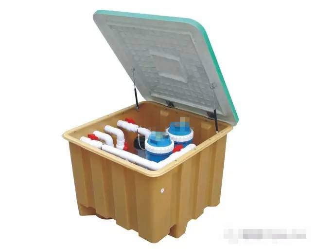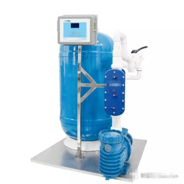 考慮到別墅泳池規模較小,且別墅內空間有限,泳池循環過濾設備可優先考慮無機房一體化設備。地埋式一體機循環過濾原理:是集泵房、過濾、投藥消毒等更能于一體的智能型循環過濾系統,改變了傳統的砂缸過濾方式;壁掛式一體機與地埋式一體機一樣,只是安裝方式不同。